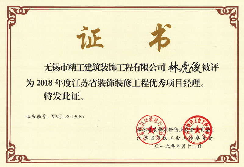 我公司林虎俊获得2018年度省优秀项目经理
