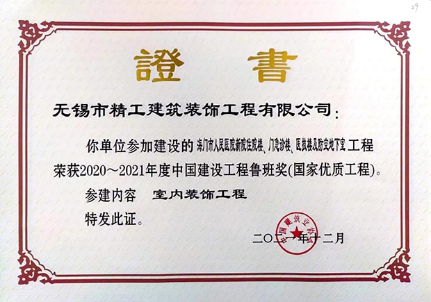 公司喜获中国建设工程鲁班奖(国家优质工程)